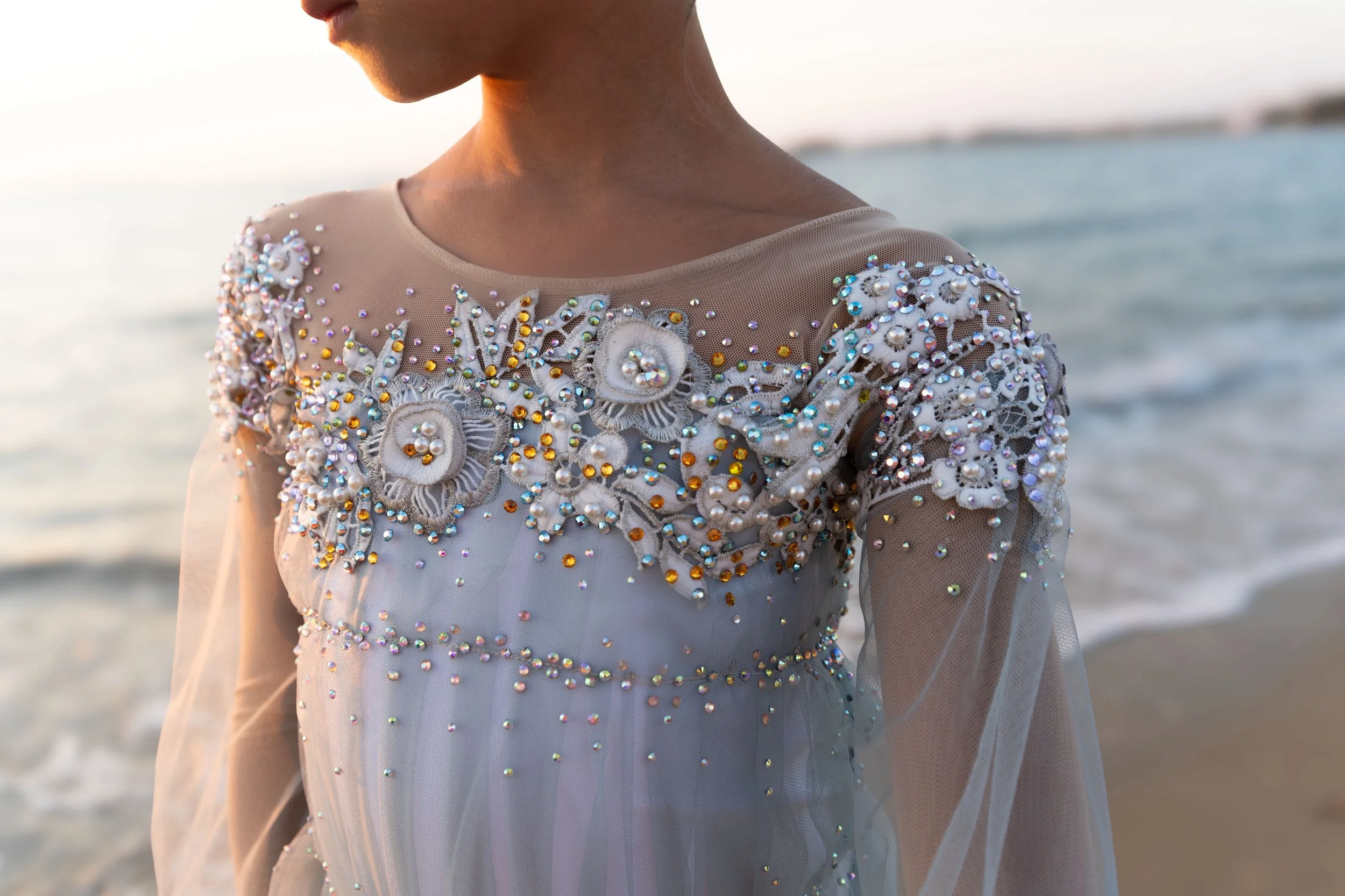 One competition dress, including design and fabric research. Fabric options range from basic 4-way stretch, sequins, tulles with pleating, draping or appliques, 6+ groves of rhinestones. Delivery will vary based on the complexity.